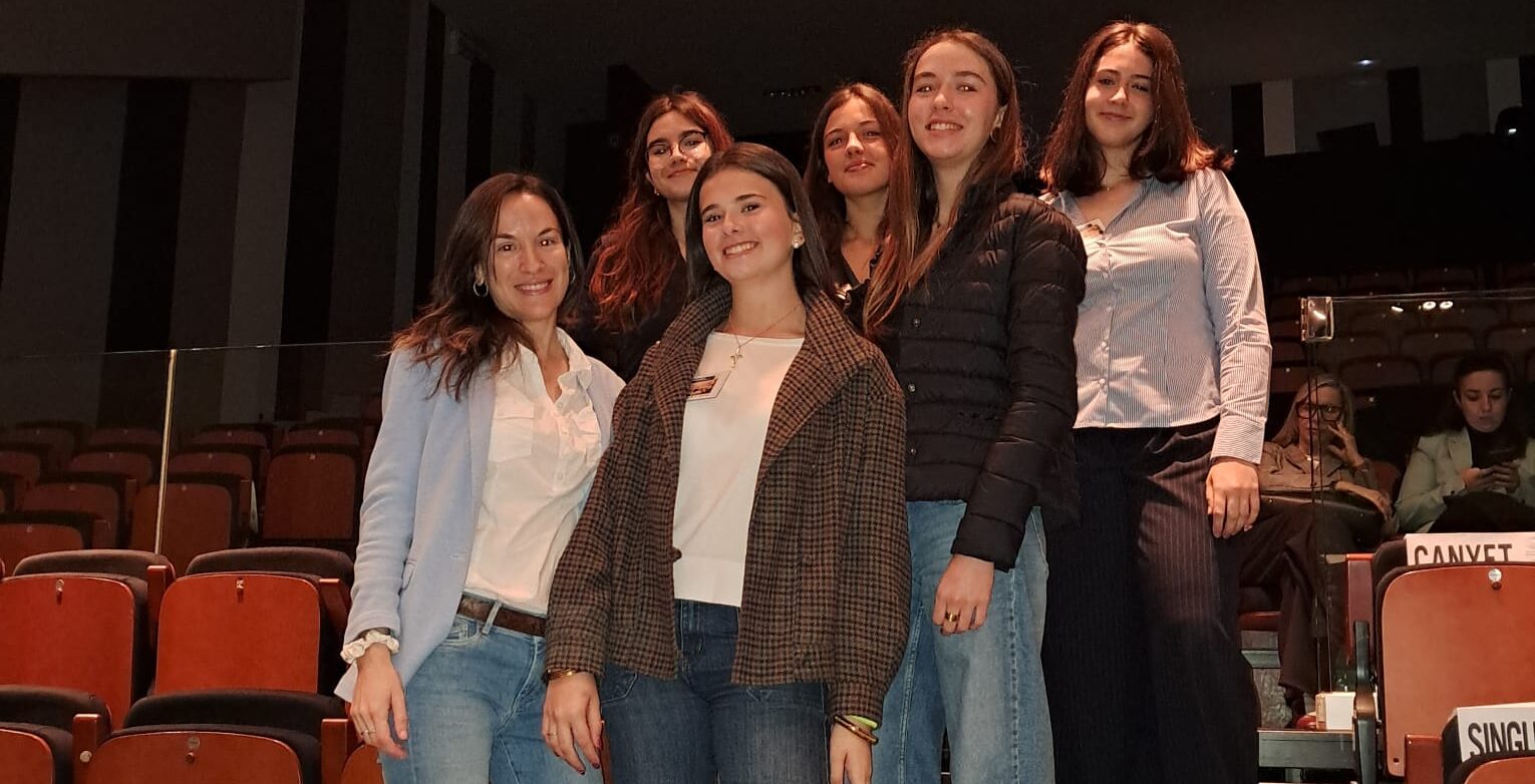 Cinc alumnes de 4t d’ESO han representat la nostra escola en la celebració, avui, de la quarta jornada “Eurodiputats per un dia”, que s’ha celebrat al teatre Margarida Xirgu. Es tracta de la Blanca Basolí, la Georgina Solsona, l’Alba García, la Sofia Lancho i l’Adriana Estany, que hi han anat acompanyades per la professora Elisabeth Chillón. La iniciativa consisteix a simular el funcionament del Parlament Europeu per desenvolupar les competències comunicatives, el sentit crític, el treball en grup i ajudar al jovent que hi participa a conèixer quina és la dinàmica de la institució des de la seva pròpia experiència. En la jornada hi han participat 120 alumnes d’onze centres educatius públics i concertats de Badalona i l’Institut Ramon Berenguer IV de Santa Coloma de Gramenet. Enguany el tema a debatre ha estat: “La desacceleració de l’empoderament juvenil: Són els joves conscients que no és una decisió individual?”.