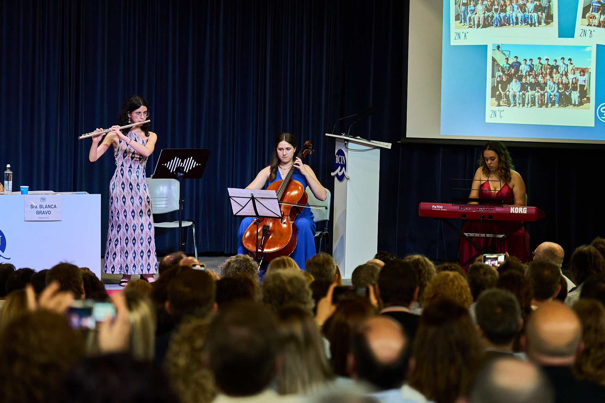 La 27a promoció de Batxillerat del Col·legi Badalonès s’ha graduat aquesta tarda en un acte marcat, com és habitual, per l’emoció i els comiats. Els graduats i graduades, 94 en total, han recollit els seus diplomes en presència dels seus familiars que, com sempre, han omplert l’auditori Maria Aurèlia Campmany del BCIN. La directora del Badalonès, Ani Dunjó, ha estat l’encarregada d’obrir l’acte, durant el qual s’ha homenatjat els ja exalumnes que han estat objecte de distinció durant l’últim any. És el cas, per exemple, dels nou nois i noies que van obtenir Mencions d’Honor en la passada edició de la selectivitat. Es tracta de la Martina Arias , en Sergio Borque, l’Alex Chaves, la Kyra Dominguez, en Daniel López, la Lucia Moreno, l’Ariadna Puyada, la Nadia Santiago i la Paula Puigdemont que, a més de la menció, va guanyar un Premi Recerca Jove. També s’ha distingit alumnes de l’actual promoció. És el cas de l’Adrián Vargas, de la Bruna Ribas i de la Neus Valero, que han rebut diversos reconeixements pel seus treballs de recerca. Durant la cerimònia, conduïda pels alumnes de 1r de Batxillerat Albert Esquirol, Arlet Blanch i Pere Guillén, han intervingut, a més de la directora, la cap d’Estudis de Batxillerat, Júlia Castillo i, en representació dels alumnes, Clàudia Vera, Esteve Guàrdia, Laia Hernández i Álvaro Nasarre. També hi ha hagut una actuació musical a càrrec de la Manuela Montero, la Matilda Olivart i la Maria Rosa. Un cop acabat l’acte institucionals els graduats, els seus familiars i l’equip docent han compartit un aperitiu al vestíbul Europa.